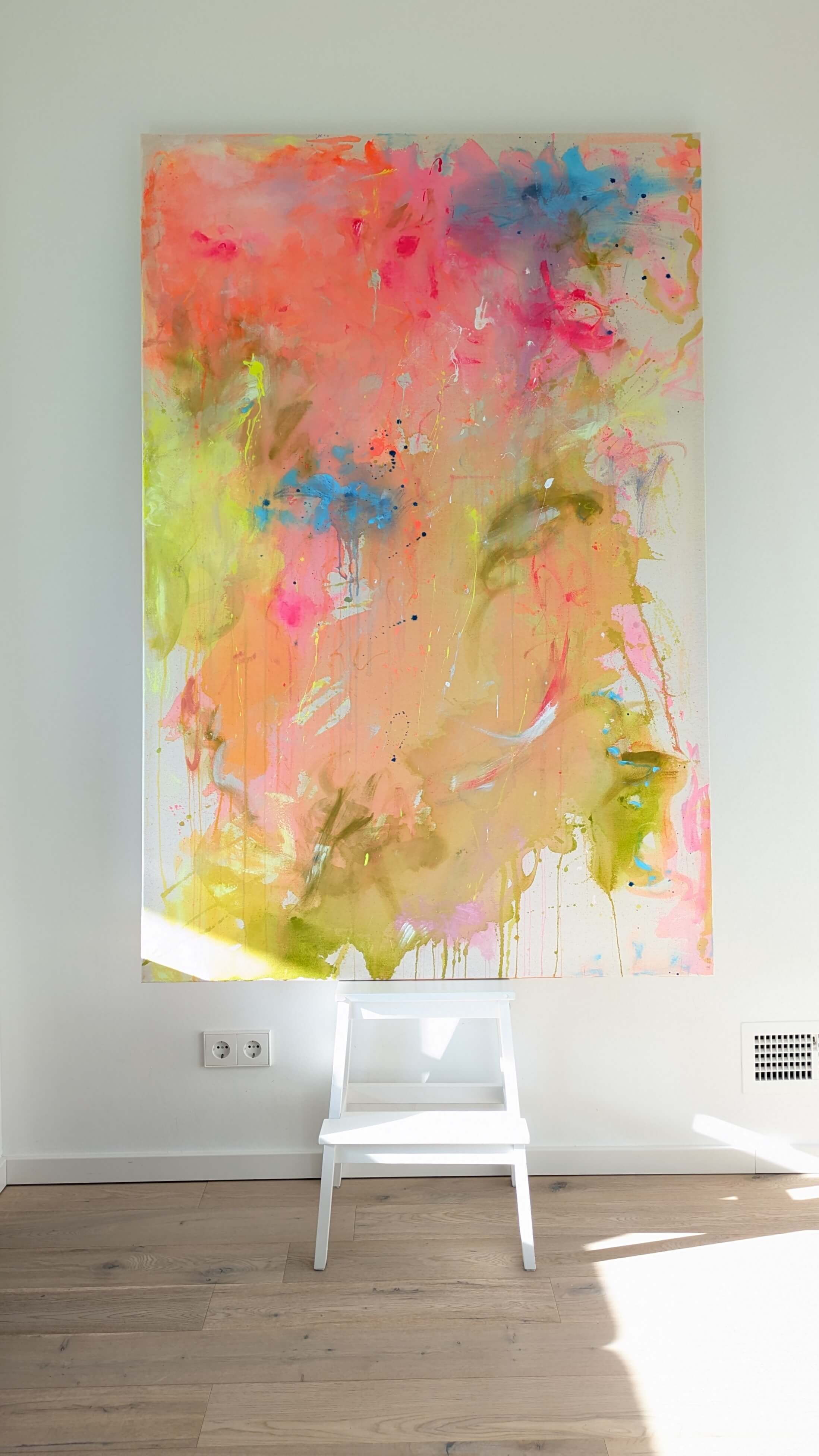 Meine Bilder sind keine fertigen Antworten, sondern offene Räume. Ich lade dich ein mit den Werken in Resonanz zu gehen und intuitiv in die Farbschichten einzutauchen.