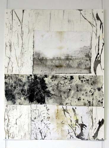 soziale Gefüge, seit 2011 analytische Naturdarstellung, 2013 Papierarbeiten mit Elementen aus Textil, Pinsel und Federzeichnung, Druck, Collage, Kalligrafisches als Bilder und Objekte.