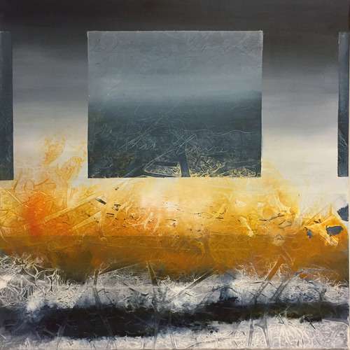 Ich male mit Öl, Lack, Acryl und mit flachen Pinseln und Rakeln unterschiedlicher Breite. Meine Bildträger sind Leinwände, Holzplatten, Leichtstoffplatten oder Papier.