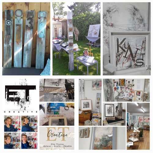 Elke Thomas -freischaffende Künstlerin aus Hückelhoven Kreis HS arbeitet seit 2000 als Dozentin im Bereich Malerei und Objektgestaltung. Sie absolvierte ein mehrjähriges Studium am Institut für bildende Kunst und Kunsttherapie in Bochum (IBKK) mit Abschluss in der Meisterklasse für Malerei und Grafik. Eigenes Atelier ' Farbenspiegel ' von 2005 - 2019.