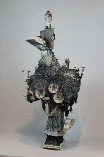 Der kürzlich mit 80 Jahren verstorbene Übach-Palenberger Vollblutkünstler Hermann Josef Mispelbaum, Akademieabsolvent und mehrfacher Preisträger, ist mit Zeichnungen und seit 20 Jahren auch mit Objekten hervorgetreten. Phantasievoll, gesellschaftskritisch und mit Humor kommentierte er in schonungslos eigenständigem Stil seine Welterfahrung und persönliche Situation, wie die ausgestellten Skulpturen und Zeichnungen zeigen. (Dirk Tölke)