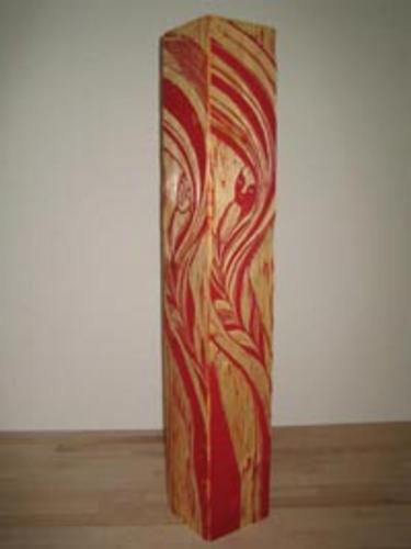 Holzobjekte: sie dienen zugleich als Druckstock