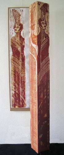2009: Zeitschrift 'Der Federkiel' zum Gedicht von Ingeborg v. Sontagh 'Frauen in Holz', Trio-Holzstelen