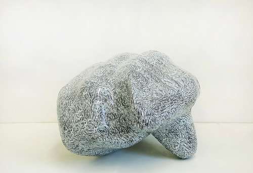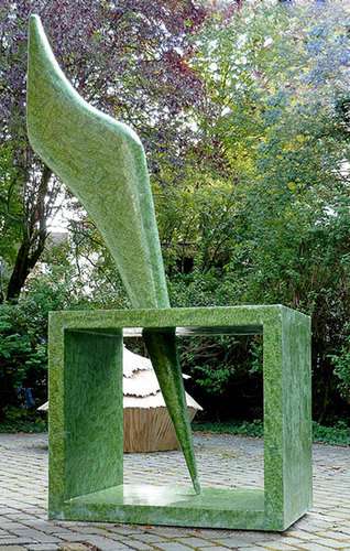 Oberflächenstruktur und raumgreifendes Volumen reizen einerseits zur nahen Betrachtung, andererseits die Plastik im Zusammenspiel mit dem umgebenden Raum wahrzunehmen.
