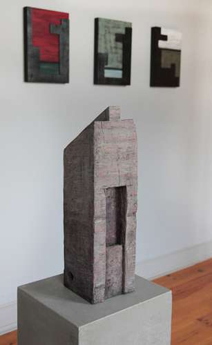 'Das zentrale Thema der künstlerischen Arbeiten von Karl-Heinz Laufs ist die Symbolik des Hauses,mit der er sich immer wieder aufs Neue auseinandersetzt. Besonders in seinen Skulpturen, aber auch in der Malerei sind es archaische, in der Formgebung auf geometrische Urformen reduzierte Raumkörper, die die Bedeutung der Heimstatt und des Schutzraumes menschlichen Lebens hervorrufen.'