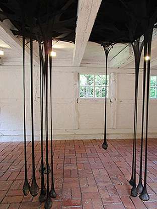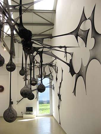 In den Installationen von Monika Ortmann sind Strukturen zu sehen, die sich mit Hierarchien und Ausbeutungs-Szenarien durch übergeordnete Systeme auseinandersetzten und die Fragen nach der persönlichen Verortung im Zusammenhang stellen. Die ästhetische und konzeptionelle Dimension wird mit einer bewussten, gesellschaftsbezogenen Haltung verbunden. Das Material hat in seiner ursprünglichen Funktion längst ausgedient: Gewebe, Strumpfhosen, Schuhe, Puppen oder Altpapier. Aus diesem Treibgut unserer Gesellschaft entstehen raumgreifende Installationen, die an die jeweiligen Ausstellungssituationen angepasst sind.