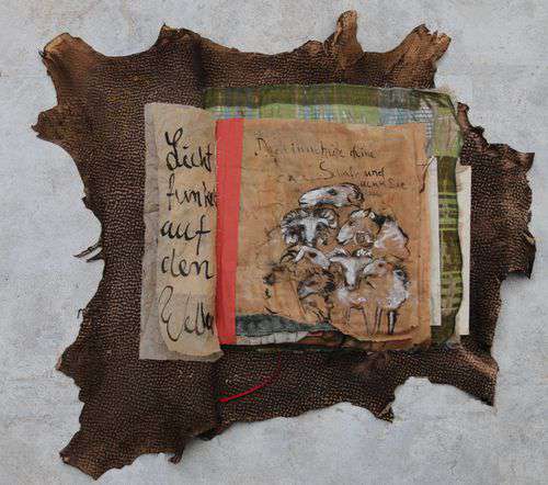2013/14/15 Papierarbeiten mit Elementen aus Textil, Pinsel und Federzeichnung, Tiefdruck, Collage, Kalligrafisches als Bilder und Objekte, Buchobljekte. Textilarbeiten: Bücher, Langbilder, Objekte und Installation
