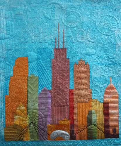 Das Bild Chicago wurde vom Jury des Internationalen Quiltfestivals in Birmingham für Design und Construction für gut befunden und die Vielfalt von Quiltmustern haben die Darstellung der Gebäuden hervorgehoben.