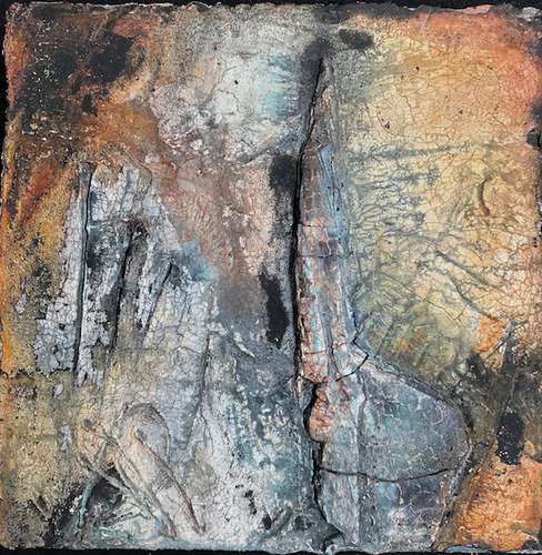 Bild 2: La Raiz_2017, Marmormehl/ Sumpfkalk auf Leinwand, Pigmente, Casein, Eitempera, Kohle, 120 x 100 cm