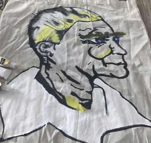 Ich habe z.B eine Vase hergestellt es bemalt. Eine Sitzbank bemalt und auf das Bank Frida Kahlo gezeichnet und bemalt. 2 Thirts bemalt und genäht. Kunst ist mein Leben. Oder z.B auf einer Einkaufstasche/ Tragetasche den ersten türkischen Präsidenten Mustafa Kemal Atatürk gezeichnet & bemalt.‘